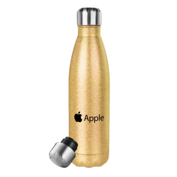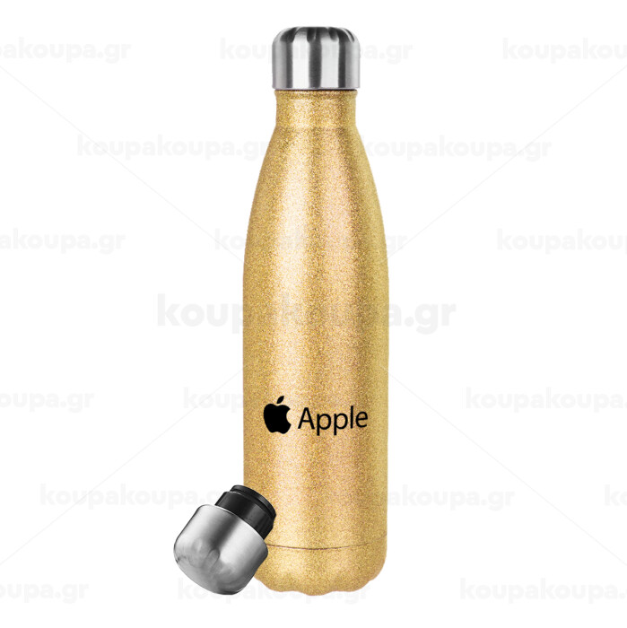 apple, Glitter gold stainless steel thermos bottle, double-walled, 500ml