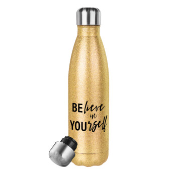 Believe in your self, Glitter gold stainless steel thermos bottle, double-walled, 500ml