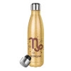 Ζώδια Αιγόκερως, Glitter gold stainless steel thermos bottle, double-walled, 500ml