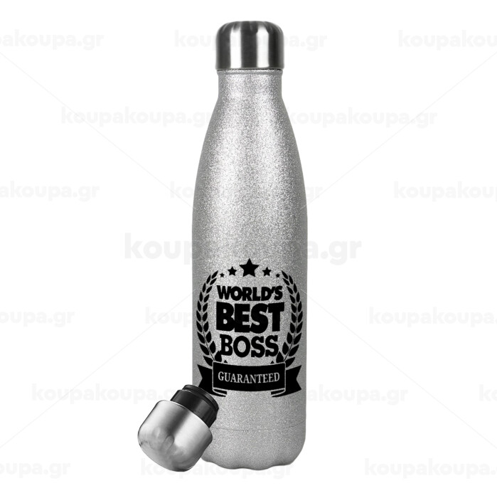 World's best boss stars, Metallic Glitter Silver Thermos Flask (Stainless steel), double-walled, 500ml