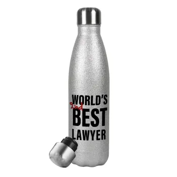 2nd, World Best Lawyer , Metallic Glitter Silver Thermos Flask (Stainless steel), double-walled, 500ml