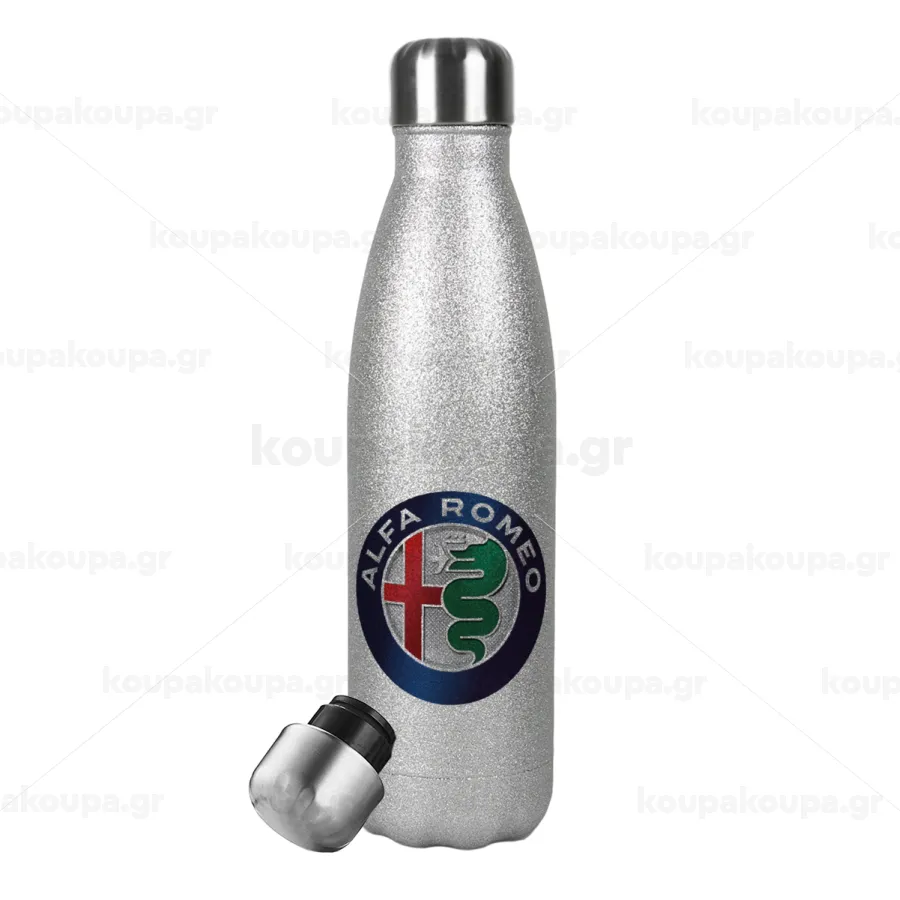 Alfa Romeo, Metallic Glitter Silver Thermos Flask (Stainless steel), double-walled, 500ml