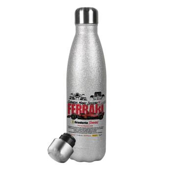 F1 Ferrari, Metallic Glitter Silver Thermos Flask (Stainless steel), double-walled, 500ml