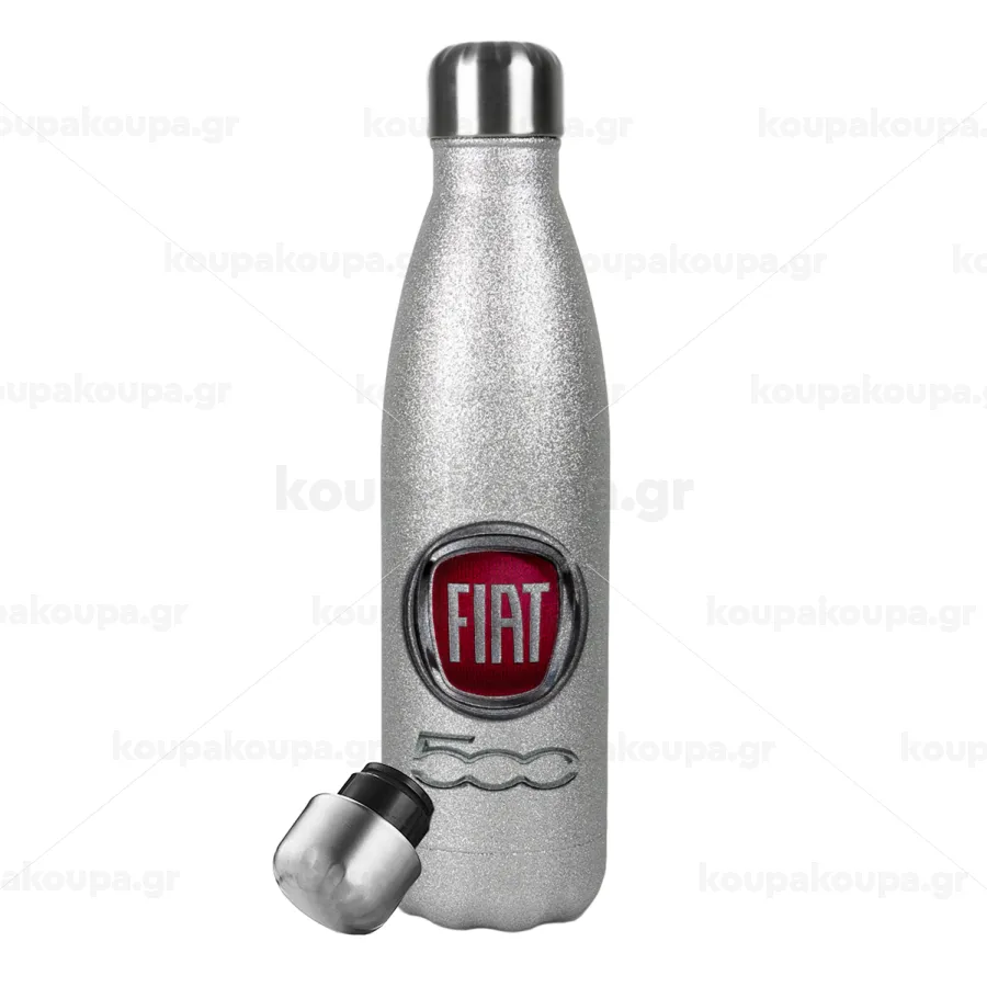 FIAT 500, Metallic Glitter Silver Thermos Flask (Stainless steel), double-walled, 500ml