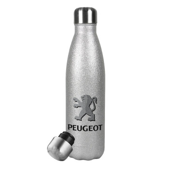 Peugeot, Metallic Glitter Silver Thermos Flask (Stainless steel), double-walled, 500ml
