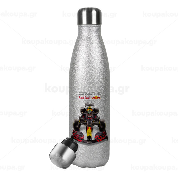 Redbull Racing Team F1, Metallic Glitter Silver Thermos Flask (Stainless steel), double-walled, 500ml