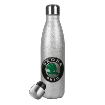 SKODA, Metallic Glitter Silver Thermos Flask (Stainless steel), double-walled, 500ml