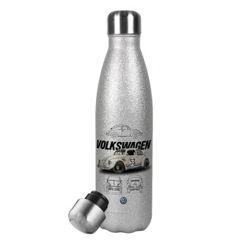 Volkswagen Beetle, Metallic Glitter Silver Thermos Flask (Stainless steel), double-walled, 500ml