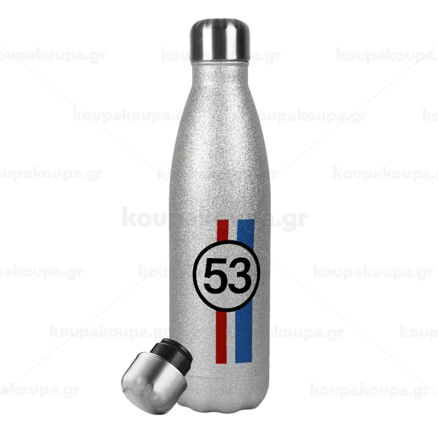 VW Herbie 53, Metallic Glitter Silver Thermos Flask (Stainless steel), double-walled, 500ml