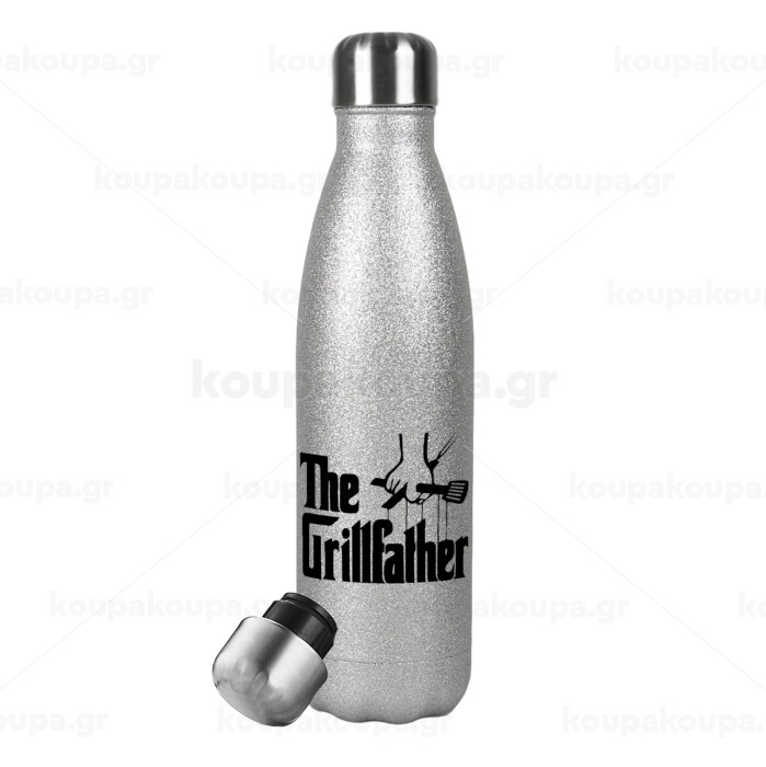 The Grillfather, Metallic Glitter Silver Thermos Flask (Stainless steel), double-walled, 500ml