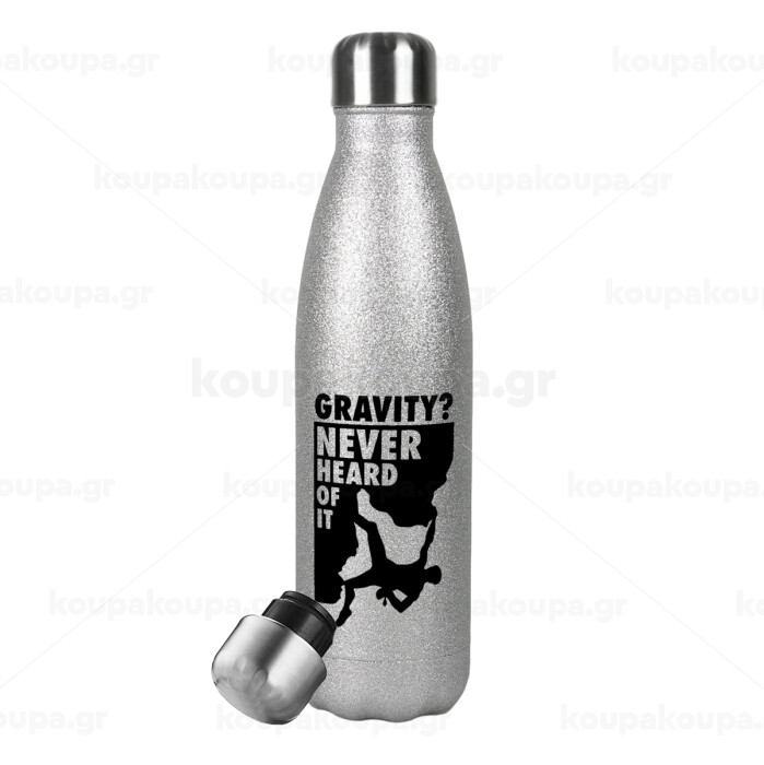 Gravity? Never heard of that!, Metallic Glitter Silver Thermos Flask (Stainless steel), double-walled, 500ml