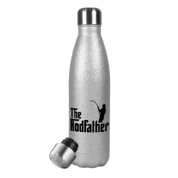 The rodfather, Metallic Glitter Silver Thermos Flask (Stainless steel), double-walled, 500ml