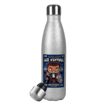 Ace Ventura: Pet Detective, Metallic Glitter Silver Thermos Flask (Stainless steel), double-walled, 500ml
