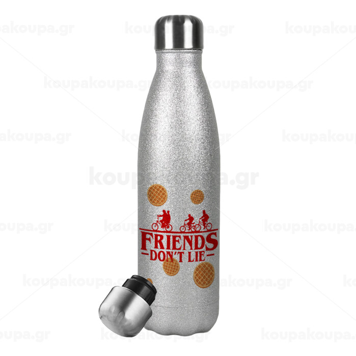 Friends Don't Lie, Stranger Things, Metallic Glitter Silver Thermos Flask (Stainless steel), double-walled, 500ml