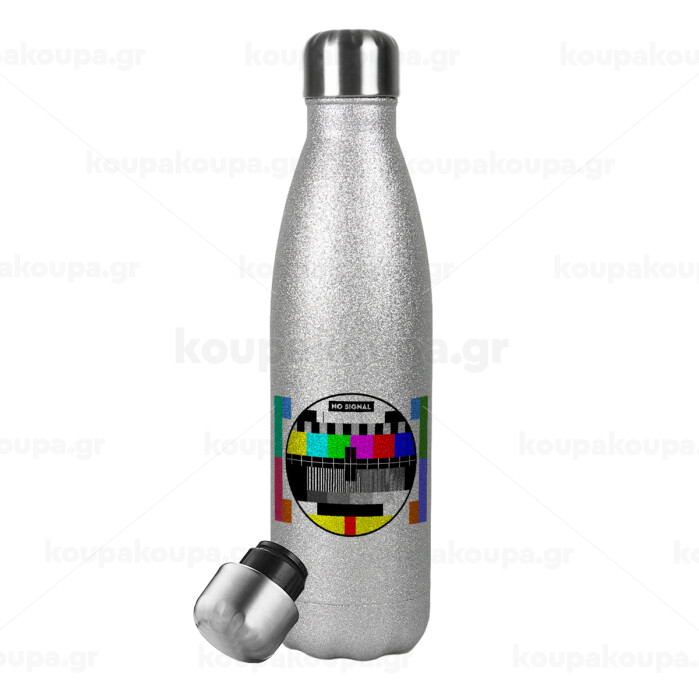 No signal, Metallic Glitter Silver Thermos Flask (Stainless steel), double-walled, 500ml