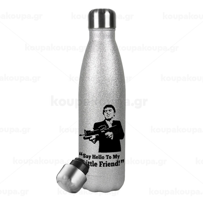 Scarface, Metallic Glitter Silver Thermos Flask (Stainless steel), double-walled, 500ml
