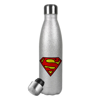 Superman vintage, Metallic Glitter Silver Thermos Flask (Stainless steel), double-walled, 500ml