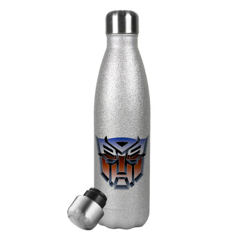 Transformers, Metallic Glitter Silver Thermos Flask (Stainless steel), double-walled, 500ml