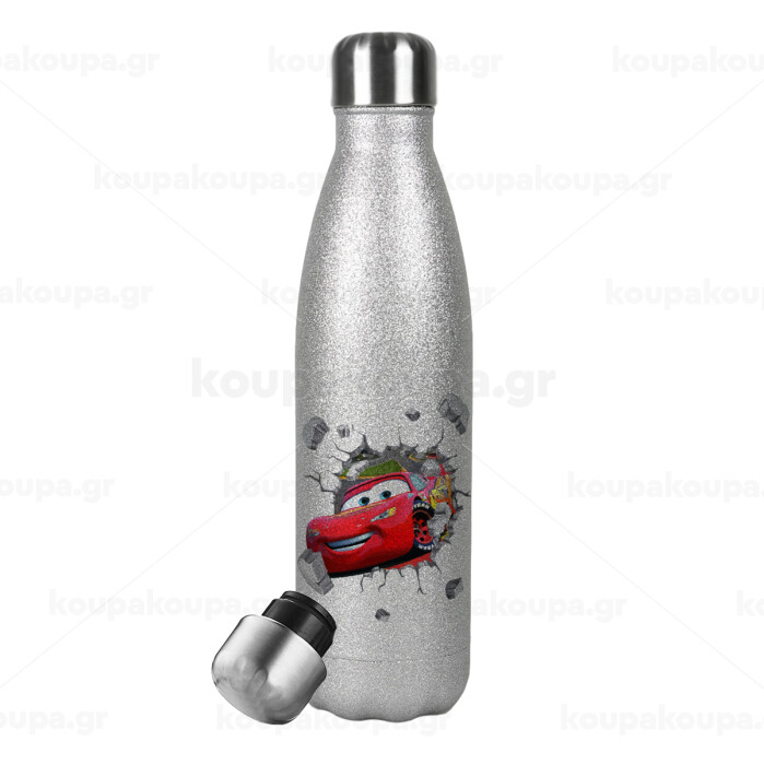 Brick McQueen, Metallic Glitter Silver Thermos Flask (Stainless steel), double-walled, 500ml