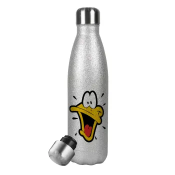 Daffy Duck, Metallic Glitter Silver Thermos Flask (Stainless steel), double-walled, 500ml