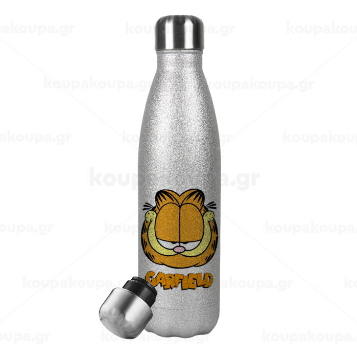 Garfield, Metallic Glitter Silver Thermos Flask (Stainless steel), double-walled, 500ml