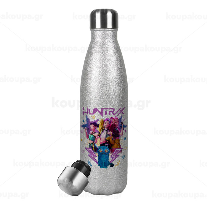 Huntrix K-pop series, Metallic Glitter Silver Thermos Flask (Stainless steel), double-walled, 500ml