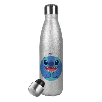 Lilo & Stitch blue, Metallic Glitter Silver Thermos Flask (Stainless steel), double-walled, 500ml