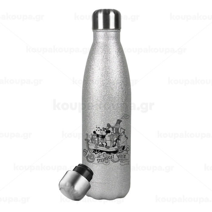 Mickey steamboat, Metallic Glitter Silver Thermos Flask (Stainless steel), double-walled, 500ml