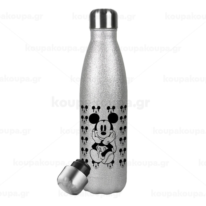 Mickey, Metallic Glitter Silver Thermos Flask (Stainless steel), double-walled, 500ml