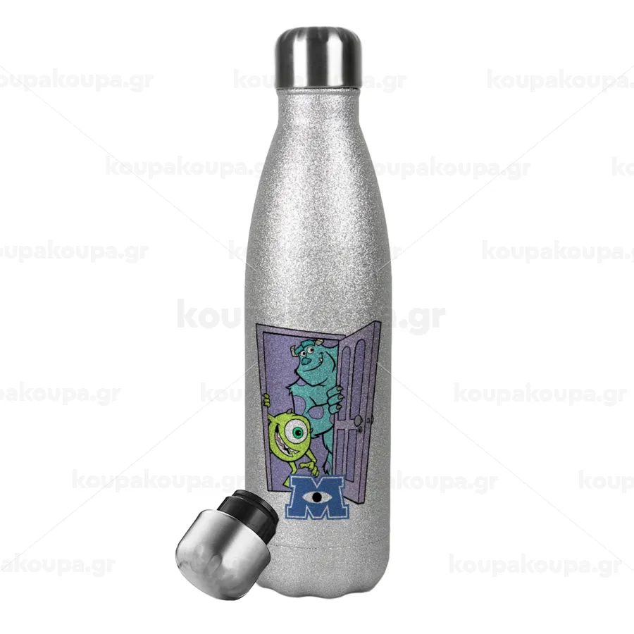 Monster inc, Metallic Glitter Silver Thermos Flask (Stainless steel), double-walled, 500ml