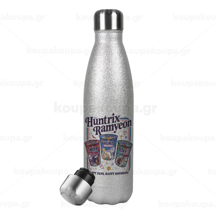 Ramyeon Huntrix, Metallic Glitter Silver Thermos Flask (Stainless steel), double-walled, 500ml