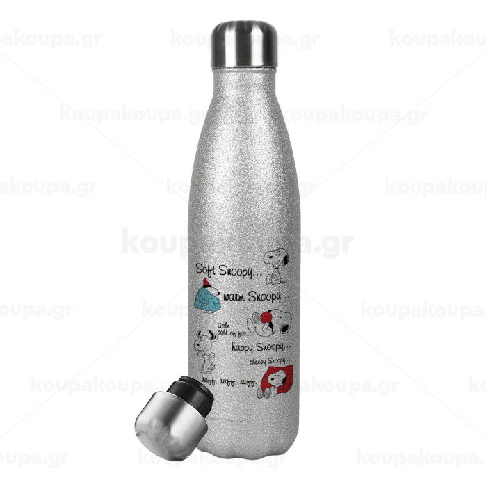 Snoopy manual, Metallic Glitter Silver Thermos Flask (Stainless steel), double-walled, 500ml