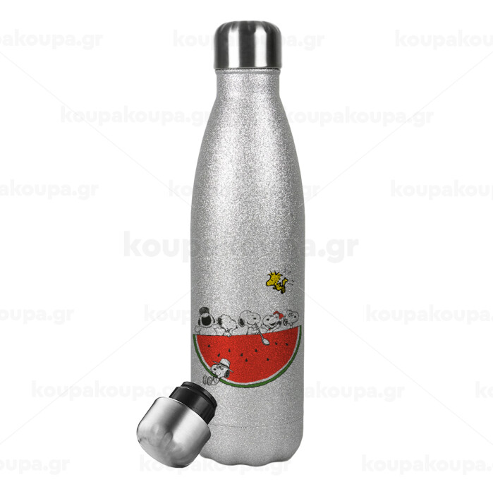 Snoopy summer, Metallic Glitter Silver Thermos Flask (Stainless steel), double-walled, 500ml