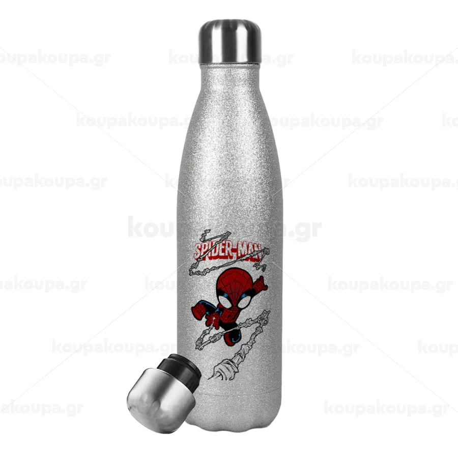Spiderman kid, Metallic Glitter Silver Thermos Flask (Stainless steel), double-walled, 500ml