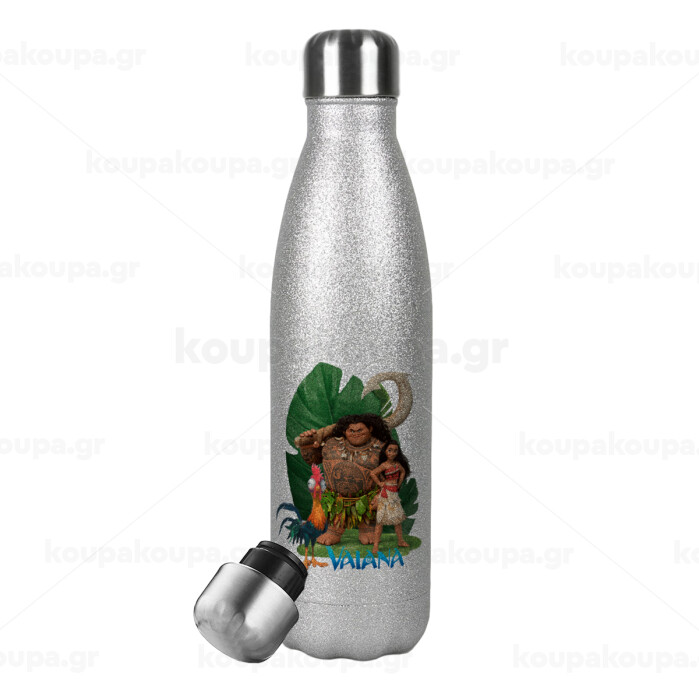Vaiana, Metallic Glitter Silver Thermos Flask (Stainless steel), double-walled, 500ml