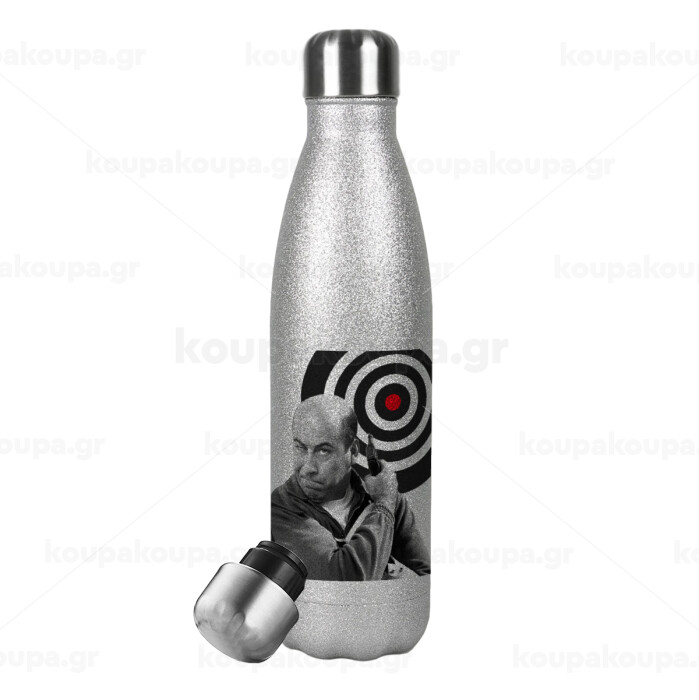 Θου Βου Φαλακρός Πράκτωρ, Metallic Glitter Silver Thermos Flask (Stainless steel), double-walled, 500ml