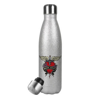 Bon Jovi, Metallic Glitter Silver Thermos Flask (Stainless steel), double-walled, 500ml