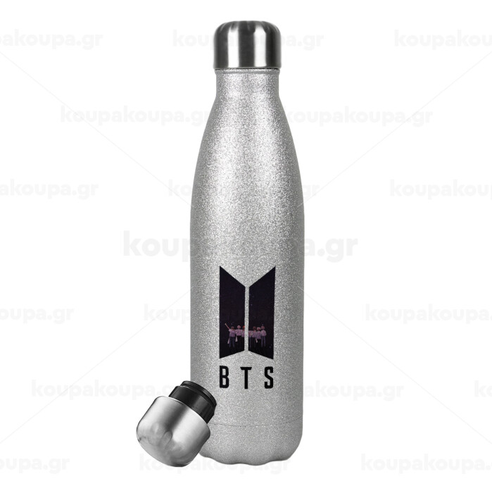 BTS, Metallic Glitter Silver Thermos Flask (Stainless steel), double-walled, 500ml
