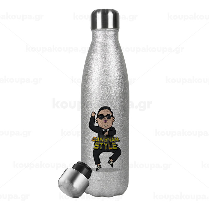 PSY - GANGNAM STYLE, Metallic Glitter Silver Thermos Flask (Stainless steel), double-walled, 500ml