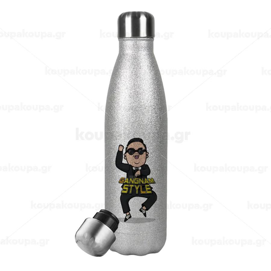 PSY - GANGNAM STYLE, Metallic Glitter Silver Thermos Flask (Stainless steel), double-walled, 500ml