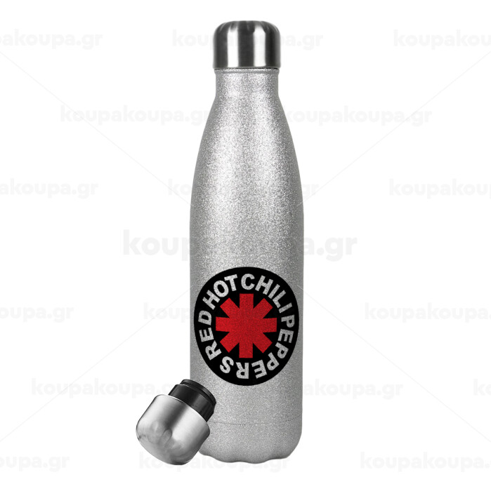 Red Hot Chili Peppers, Metallic Glitter Silver Thermos Flask (Stainless steel), double-walled, 500ml