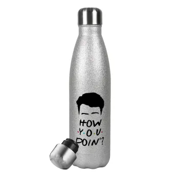 Friends how you doin?, Metallic Glitter Silver Thermos Flask (Stainless steel), double-walled, 500ml