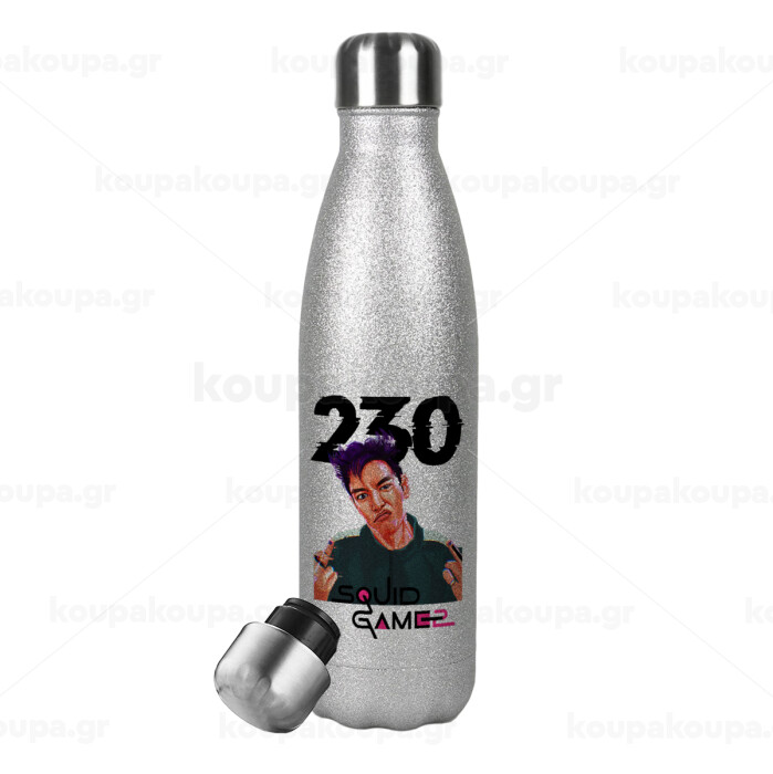Squid game 2, Thanos 230, Metallic Glitter Silver Thermos Flask (Stainless steel), double-walled, 500ml