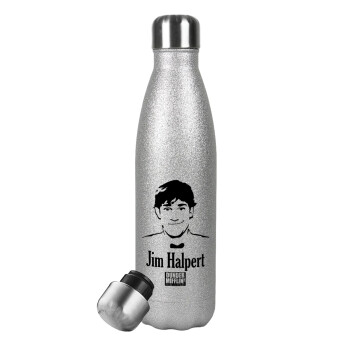 The office Jim Halpert, Metallic Glitter Silver Thermos Flask (Stainless steel), double-walled, 500ml