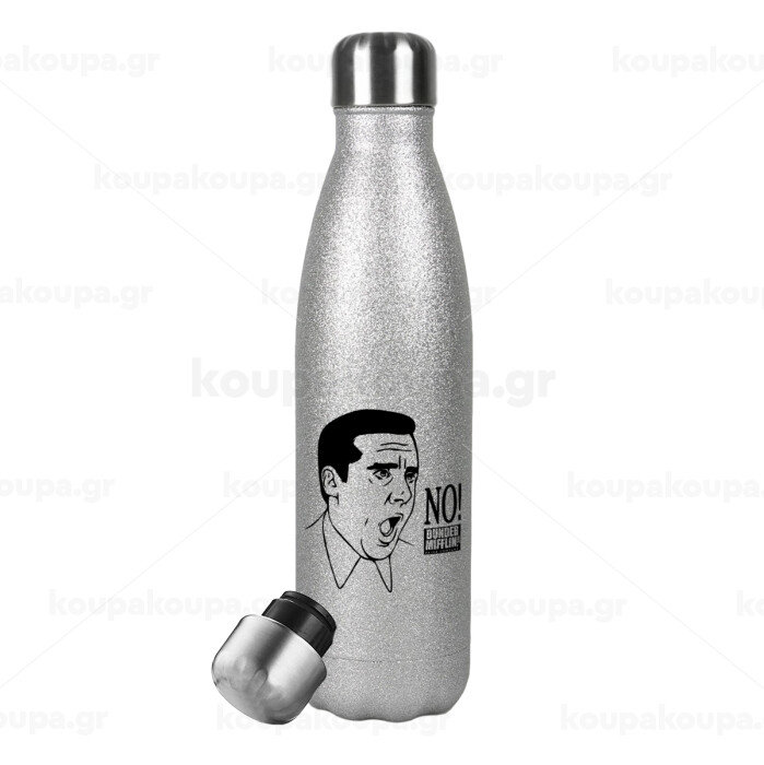 The office Michael NO!!!, Metallic Glitter Silver Thermos Flask (Stainless steel), double-walled, 500ml