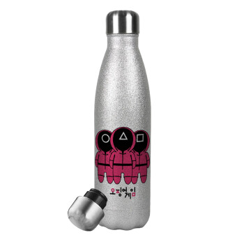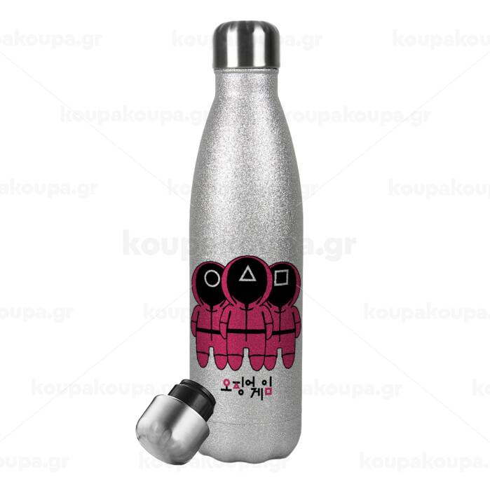 The squid game, Metallic Glitter Silver Thermos Flask (Stainless steel), double-walled, 500ml