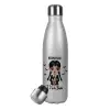 Wednesday Adams, i hate people, Metallic Glitter Silver Thermos Flask (Stainless steel), double-walled, 500ml