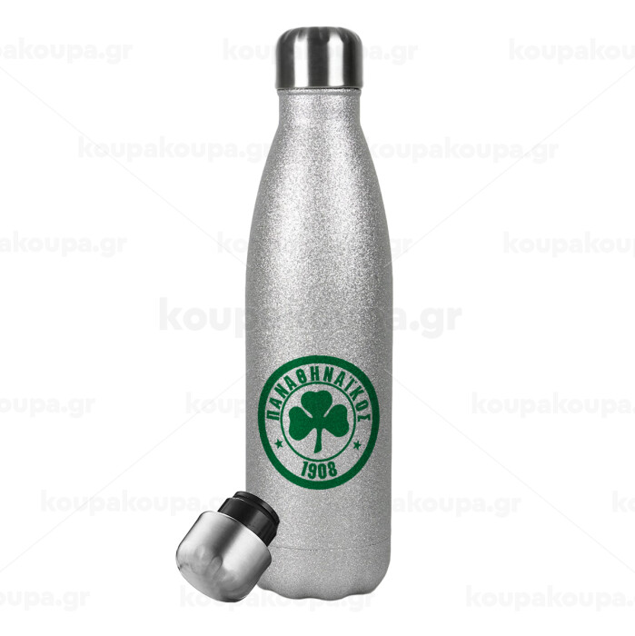 ΠΑΟ Παναθηναϊκός, Metallic Glitter Silver Thermos Flask (Stainless steel), double-walled, 500ml