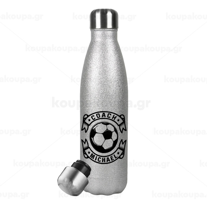 Soccer coach, Metallic Glitter Silver Thermos Flask (Stainless steel), double-walled, 500ml