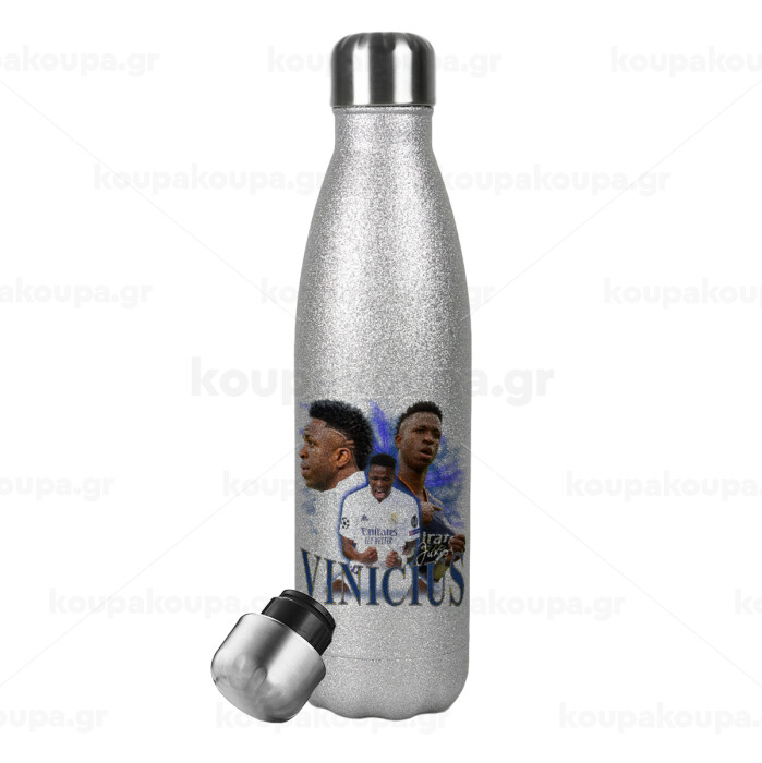 Vinicius Junior, Metallic Glitter Silver Thermos Flask (Stainless steel), double-walled, 500ml